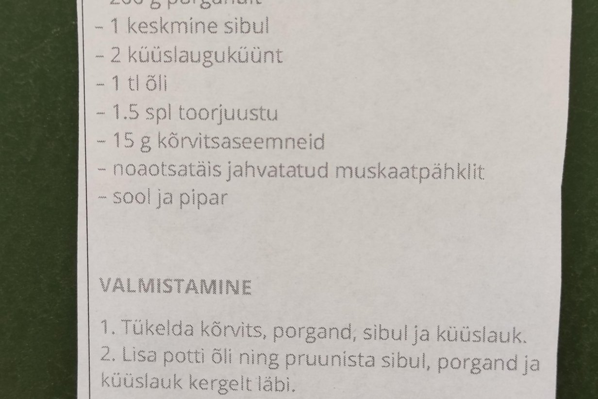 осеннего крем- супа из тыквы (sügisene kõrvitsapüreesupp). Рецепт этого супа был представлен на эстонском языке. Ученики смогли повторить названия различных овощей, входящих в состав данного блюда, вспомнили числительные и пополнили свой словарный запас новыми словами на кулинарную тематику.