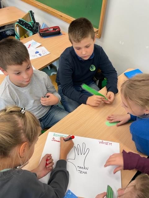 Миновал тёплый сентябрь. А мы и не заметили как эстонский язык влился в наш 3б класс. Смело впустили его к себе, дабы преодолеть все страхи, трудности и опасения. Эстонский язык красной линией проходит через все учебные предметы, встречает нас на перемене, преследует в столовой, в группе продлённого дня, приветствует на классном часе. Ребята учатся воспринимать язык, понимать и общаться. Активные методы обучения поднимают мотивацию, делают учебный процесс увлекательным.