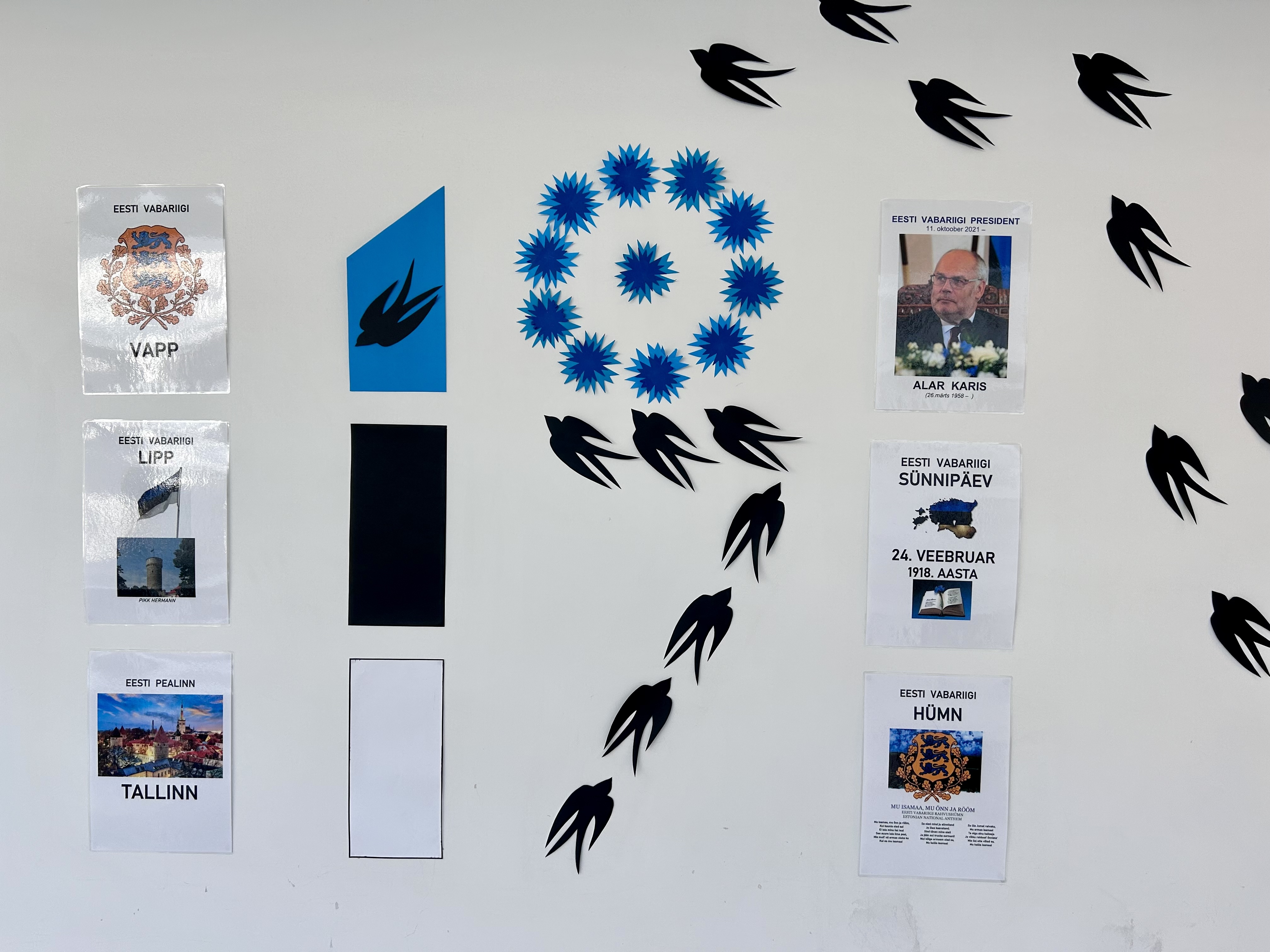 Meie kool on saanud piduliku ilme Eesti Vabariigi iseseisvuspäeva auks! Klassid ja koridorid on kaunistatud sinimustvalgetes toonides, et luua eriline ja pidulik õhkkond.