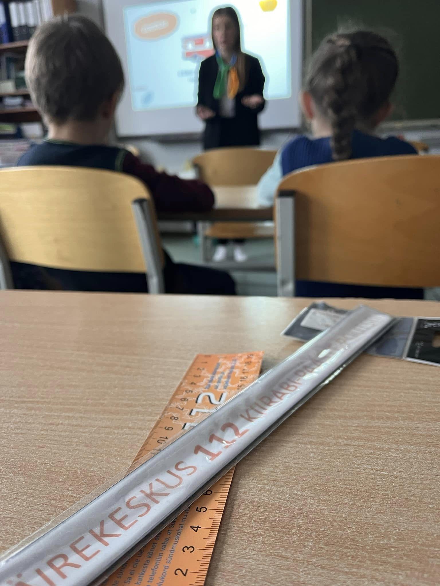 Вчера у нас в гостях был представитель из Häirekeskuslink opens on new page. Мирта рассказала ученикам первых и вторых классов о важности работы центра тревоги и о том, какие могут быть последствия ложных звонков.