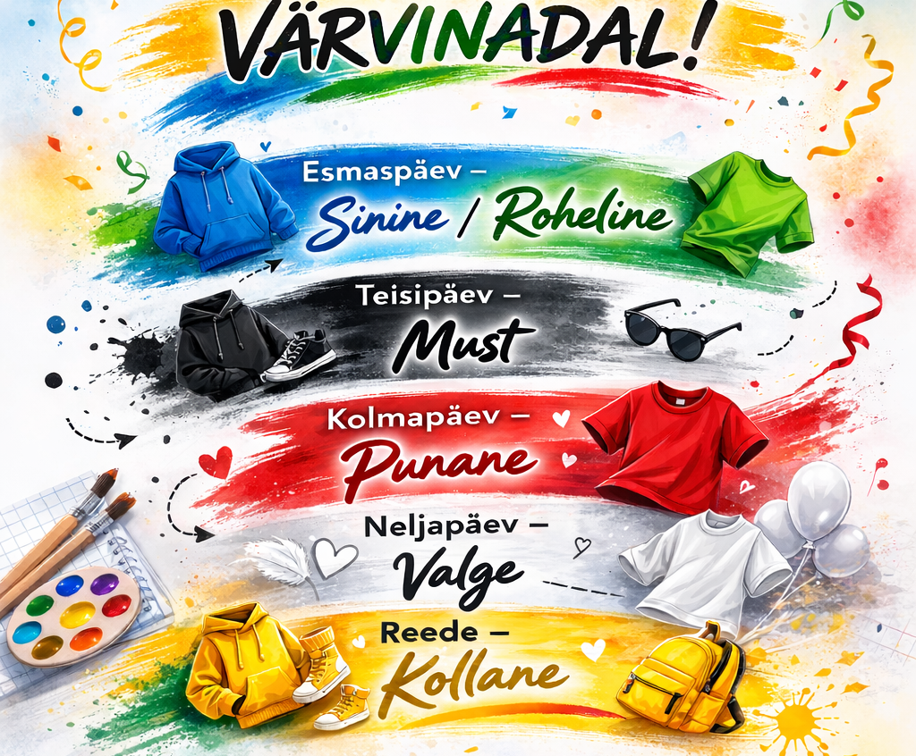 Meie koolis toimus värvinädal, mille raames panid õpilased iga päev selga kindlat värvi riideid.