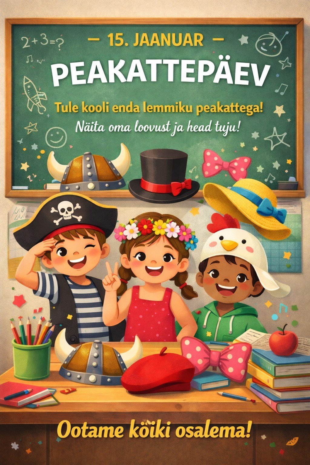 Anname rõõmuga teada, et ka meie koolis toimub peakattepäeva tähistamine. Ootame kõiki osalema ja tulema kooli oma kõige vahvama peakattega!