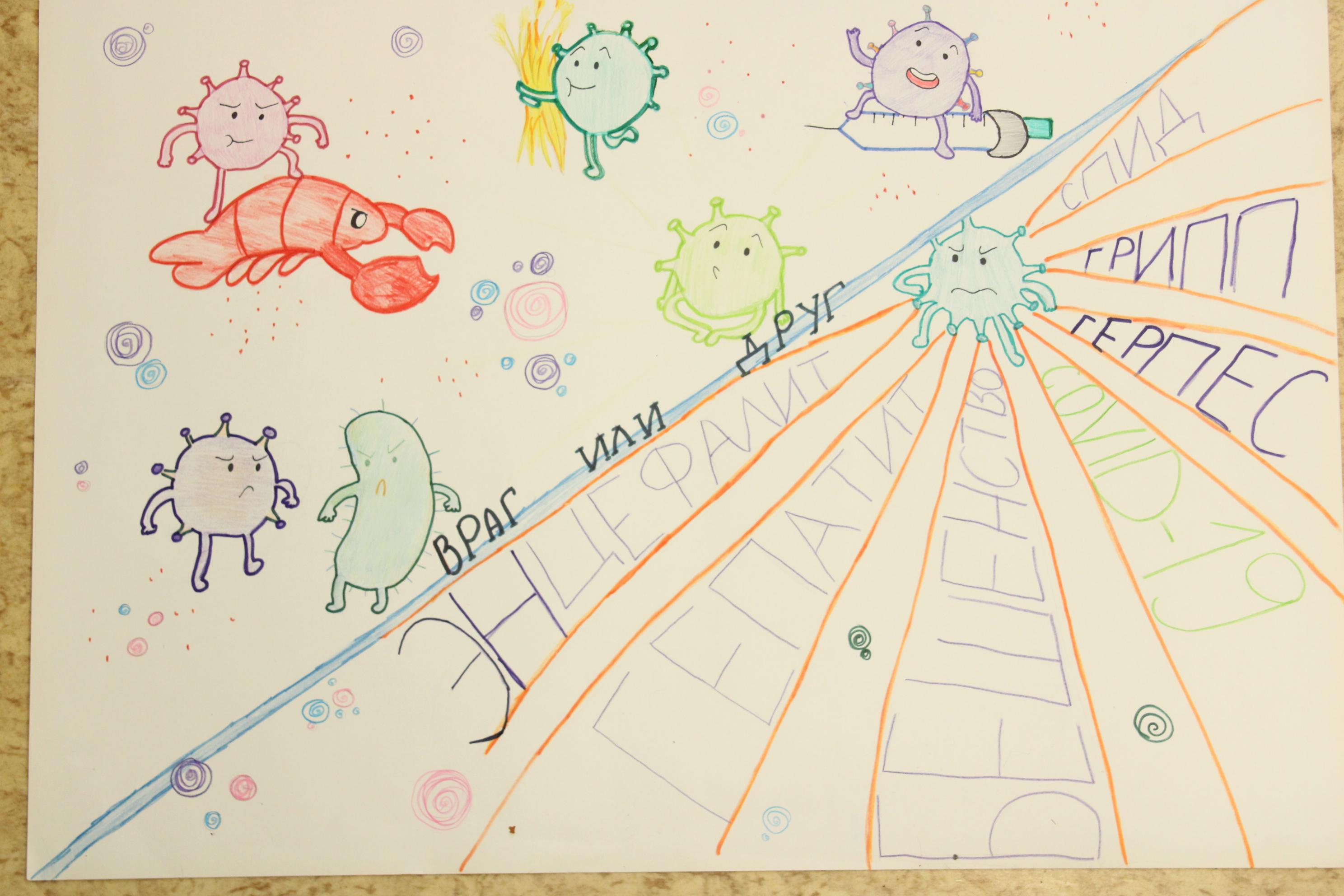 викторины QUIZZIZ. Но наша команда выделилась в конкурсе плакатов «Вирусы, какое наше