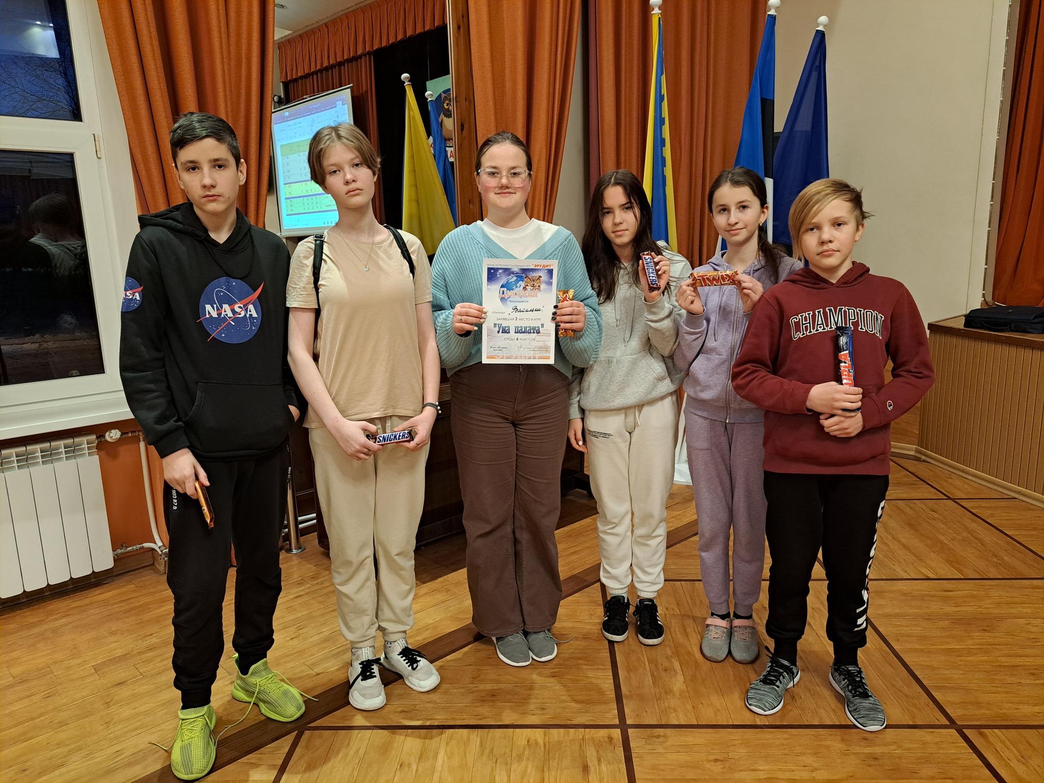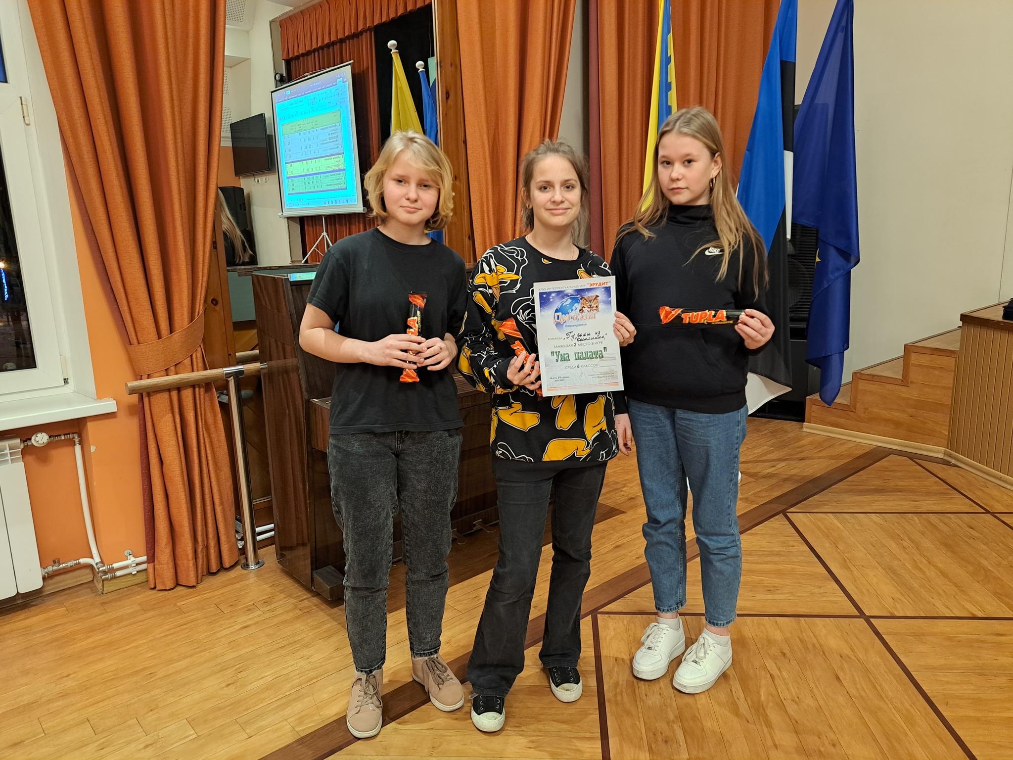 Всего на 3 балла от лучшей команды 8-классников отстала команда шестиклассников «Золотая середина» из Кесклиннаской основной школы, они и победили в этой возрастной категории. У трех оставшихся команд 6-классников разница результатов составляла всего по одному баллу. Но тем не менее, на второй строчке расположилась команда «Гульки из Кесклинна» (Кесклиннаская основная школа), а третье место досталось команде «Васильки» из Русской основной школы города Кивиыли.